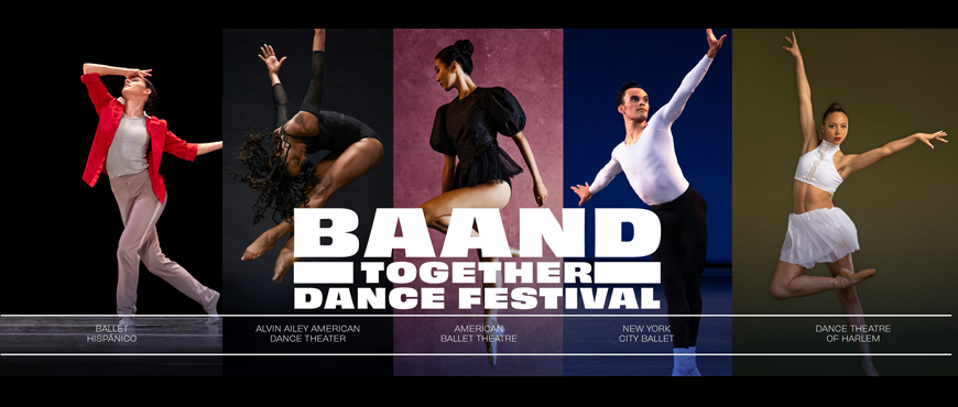 Five of NYC’s most celebrated dance companies—Ballet Hispánico, Alvin Ailey American Dance Theater, American Ballet Theatre, New York City Ballet, and Dance Theatre of Harlem—again join forces as the BAAND Together Dance Festival returns for its fourth outing and the companies reunite together on one stage! This year moving indoors, audiences will be treated to five exceptional performances of beloved programming curated collaboratively by the artistic directors of the companies, including repertory favorites. Each afternoon, one of the companies brings its unique teaching style to participants of all ages with dance workshops in the David Geffen Hall lobby.